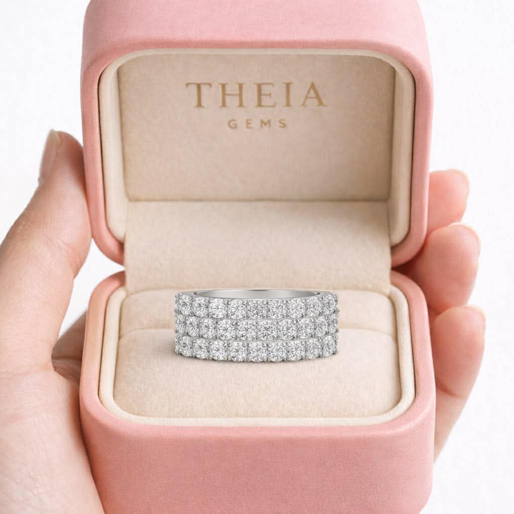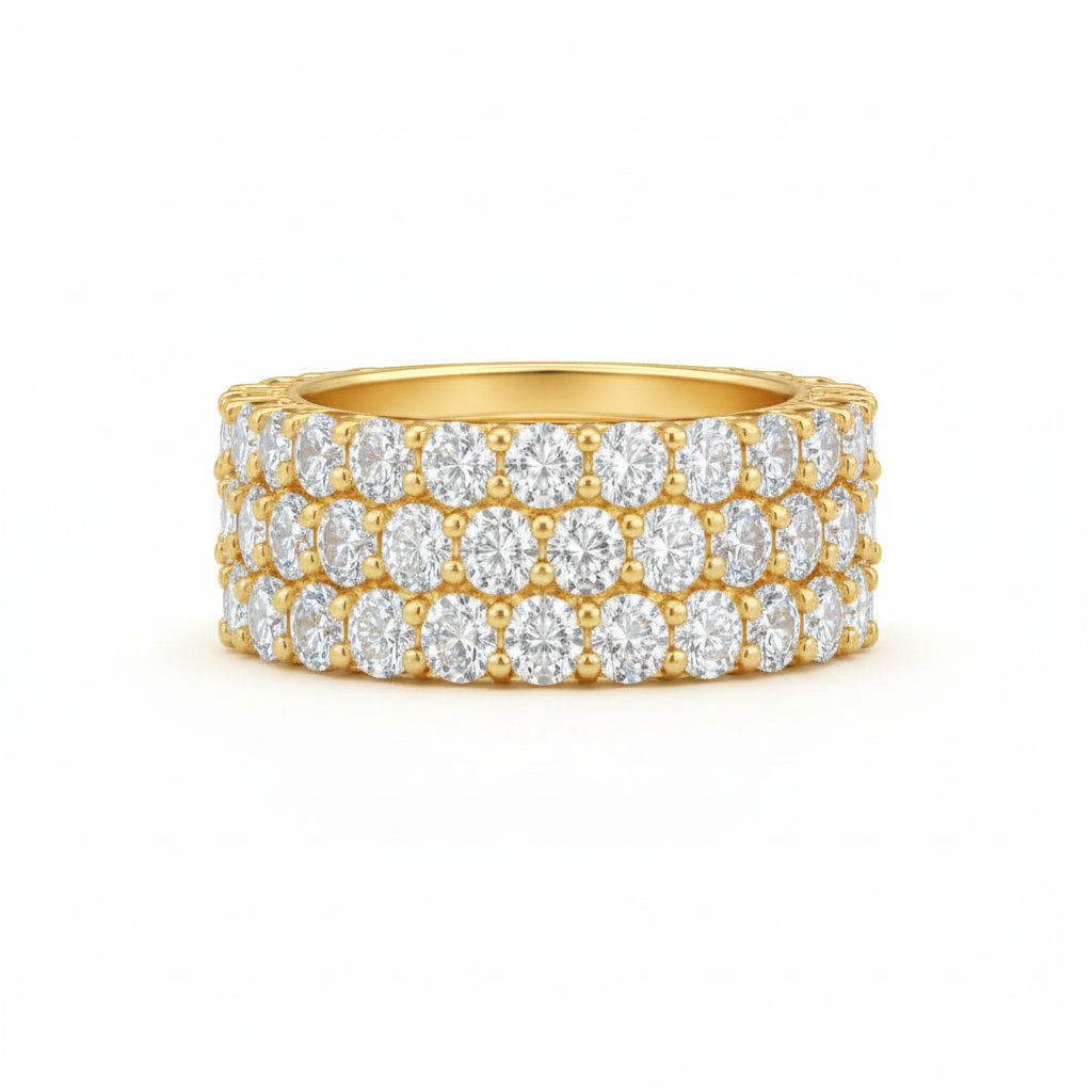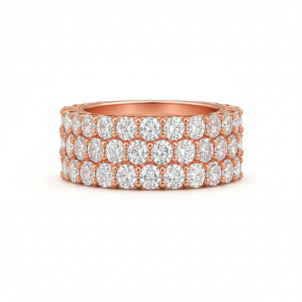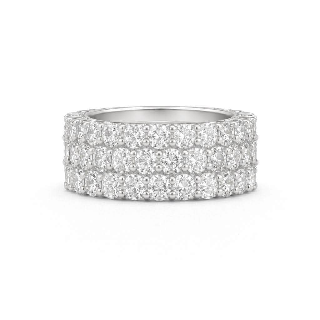 A Triple band half eternity ring design that consists of a 4MM shank with micropavé set diamonds.