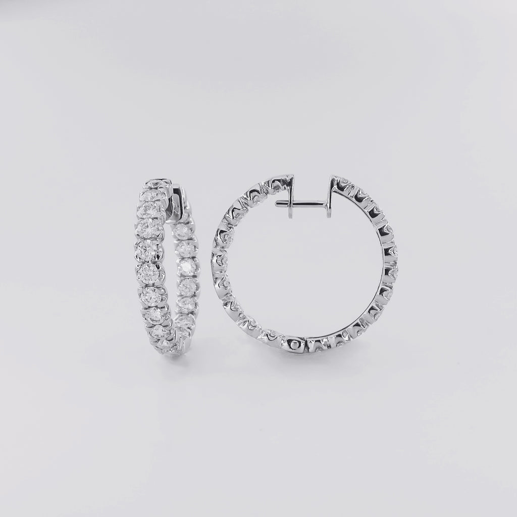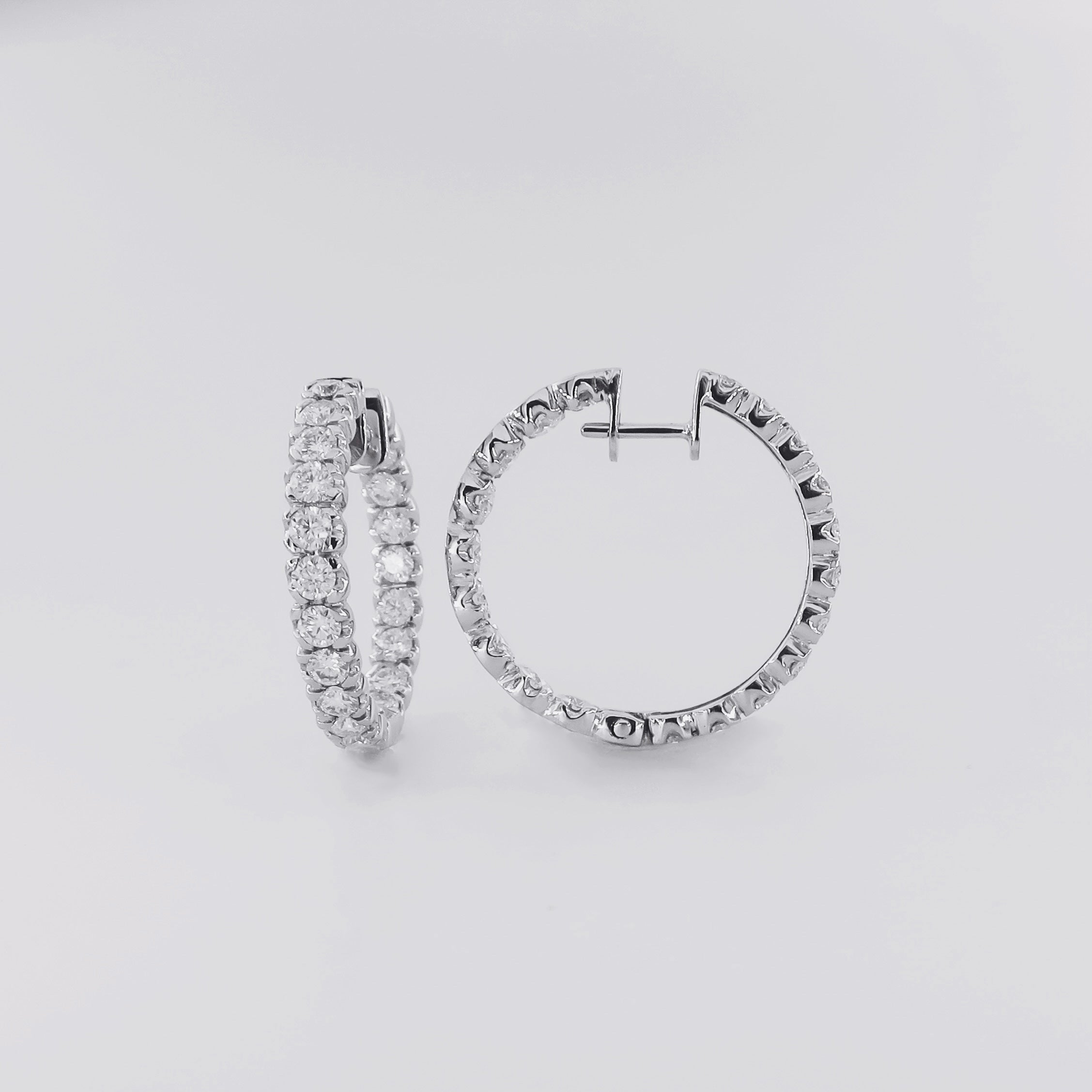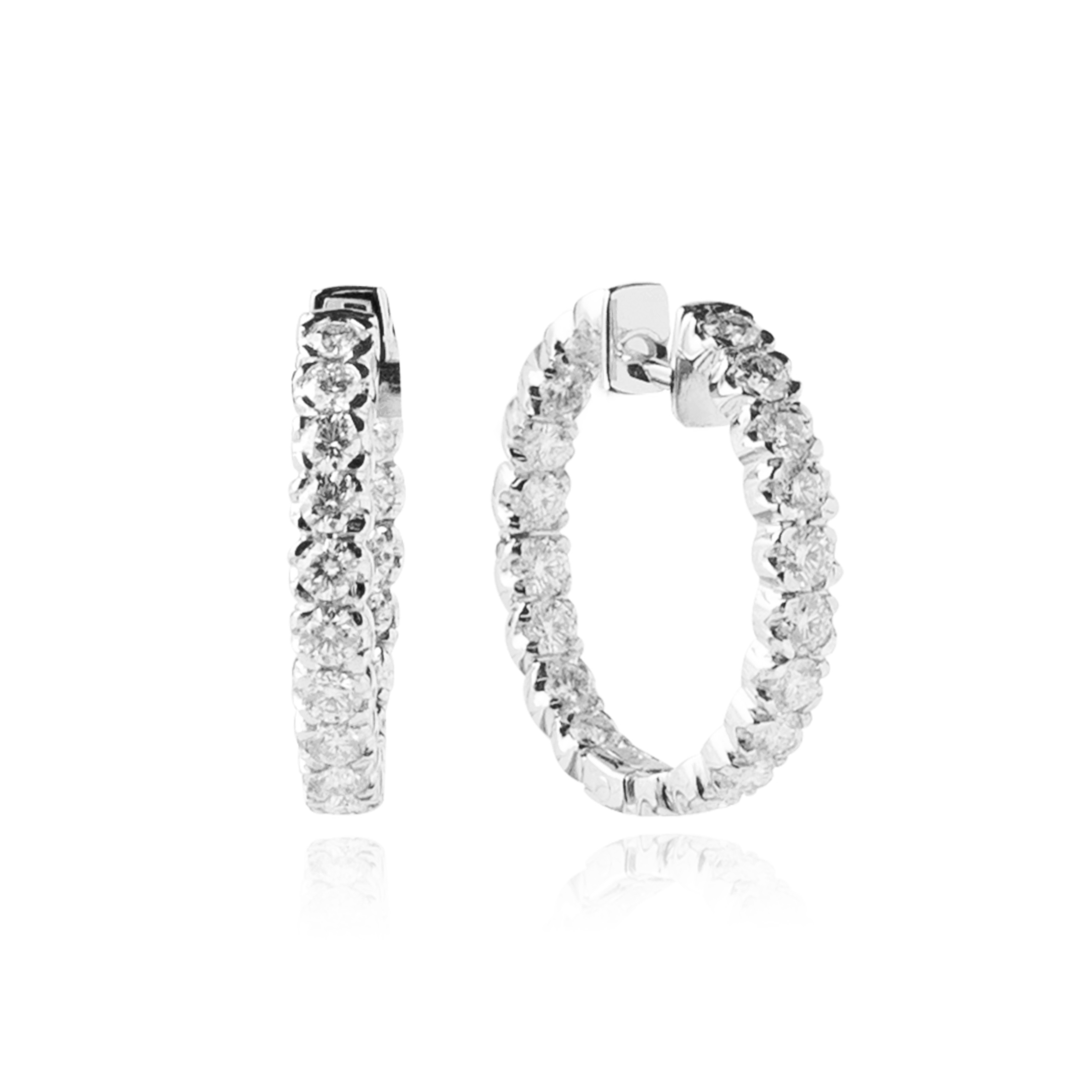 Beautiful HERA features a 2.5CTW  brilliant round cut diamonds crafted on the front and inside back of 18k white gold hoop earrings.