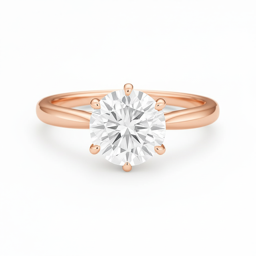 A classic design consisting of six square prongs with a tapered shank and a micro pavé on 18k gold setting.