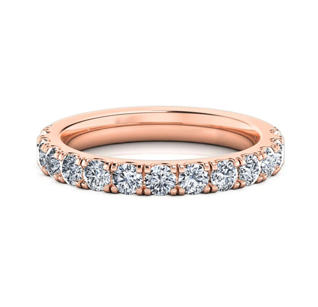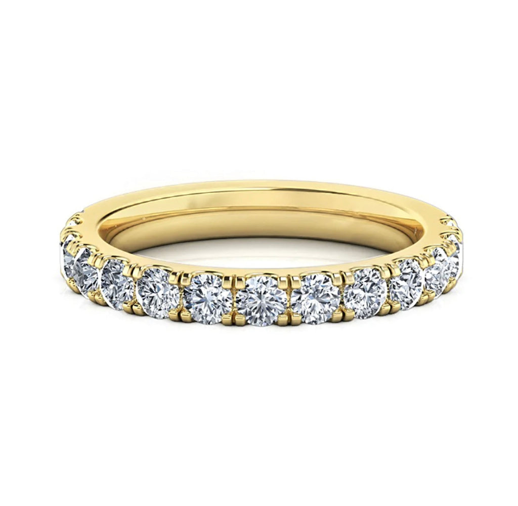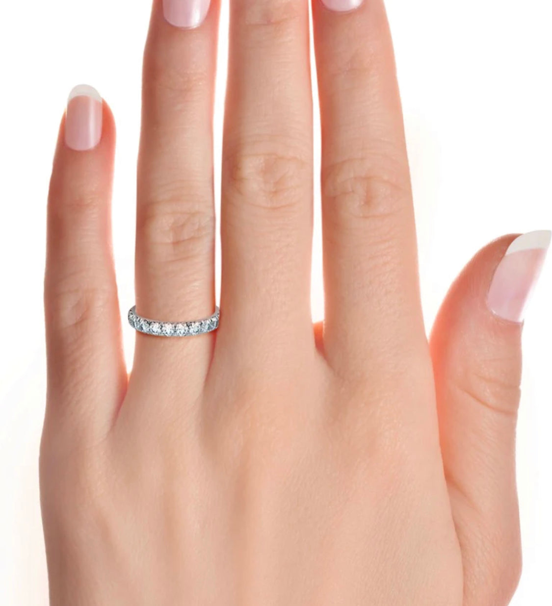 A classic, 18k white gold eternity ring design that consists of a 2.7mm shank with micropavé set diamonds. You can have it in yellow gold setting too!