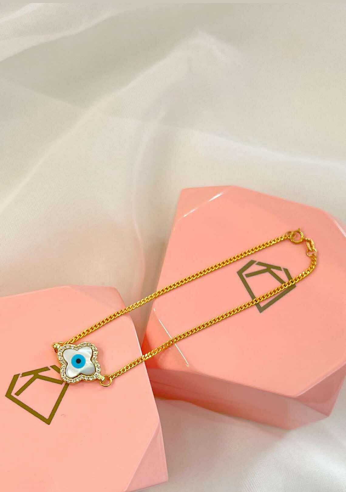 EVIL EYE WITH GOLD CHAIN BRACELET (01) is backordered and will ship as soon as it is back in stock.