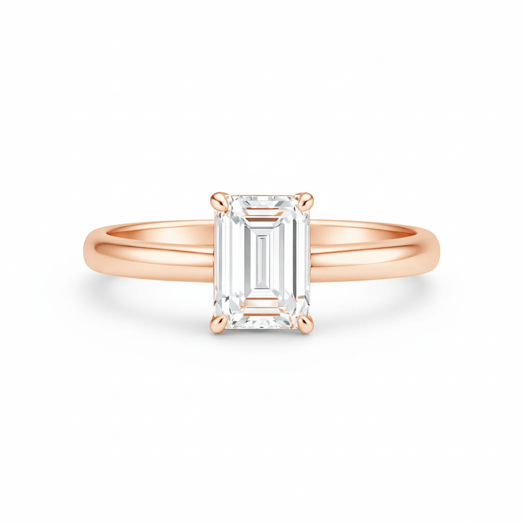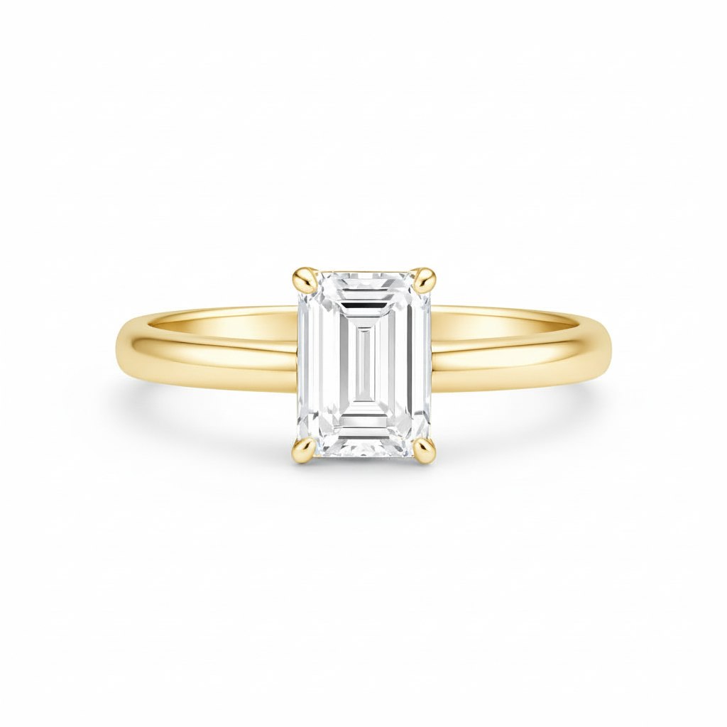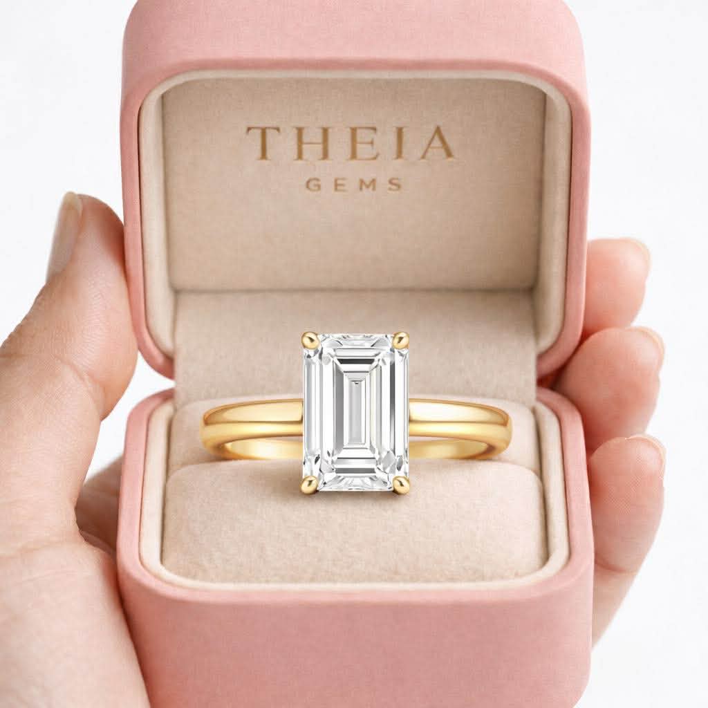 - Carat Weight: .5ct - 5ct Emerald brilliant cut Moissanite