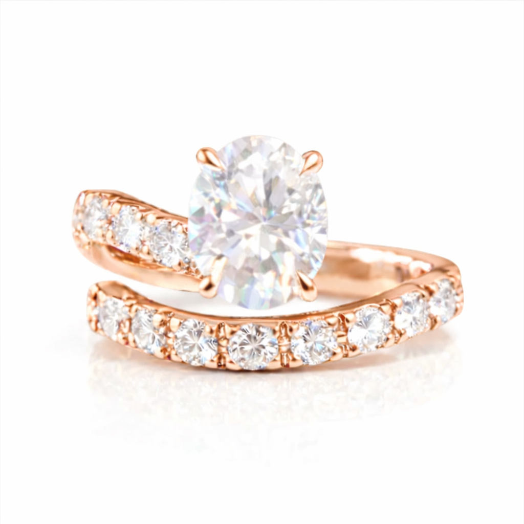 Oval Serpenti ring Moissanite with pave band