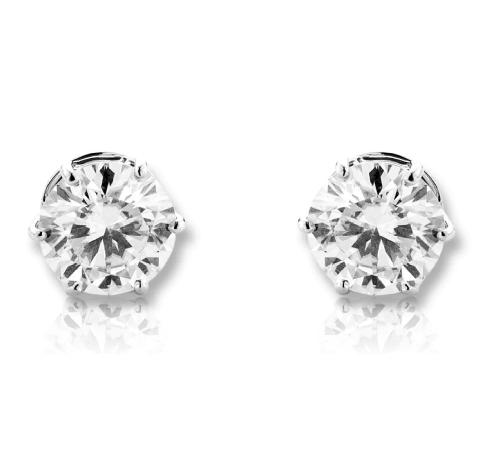 Simple and Classic. Matching round-shaped diamonds in 18k white gold in a six prong baskets.