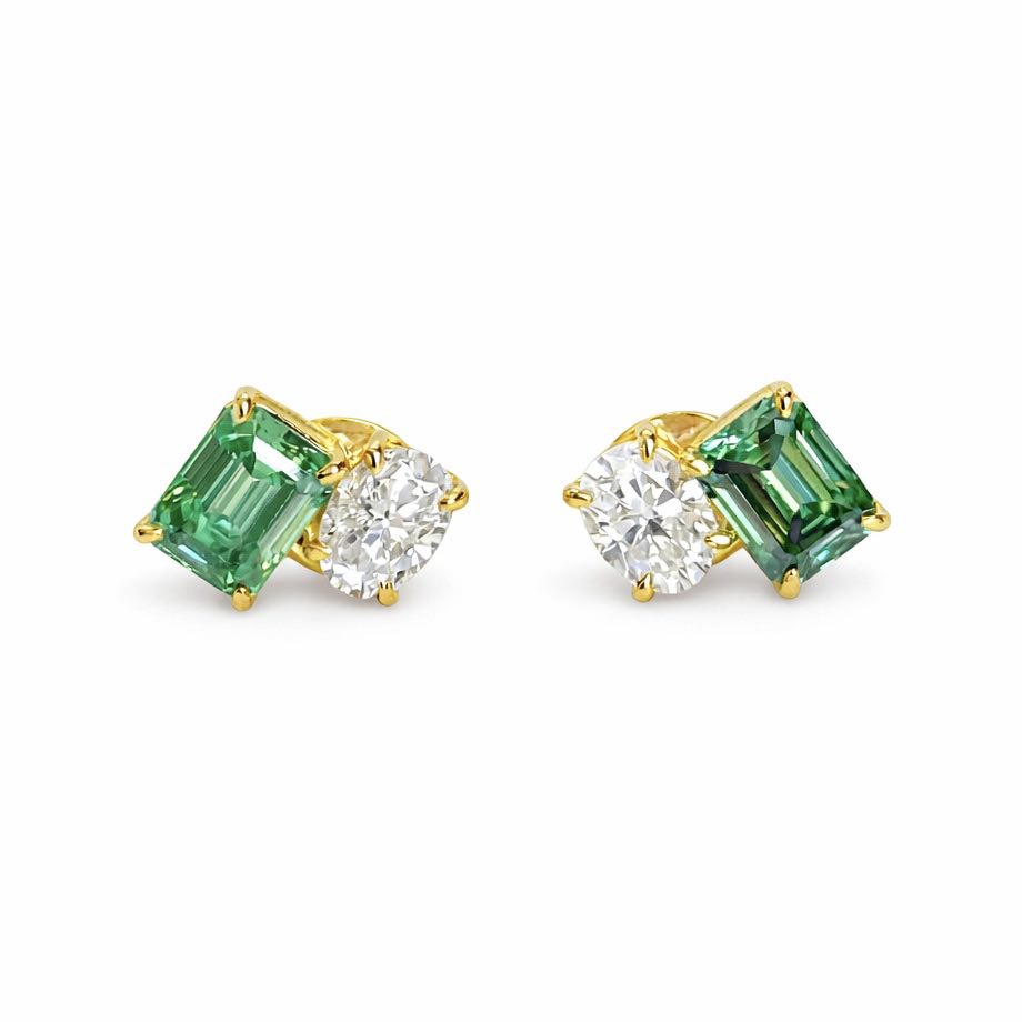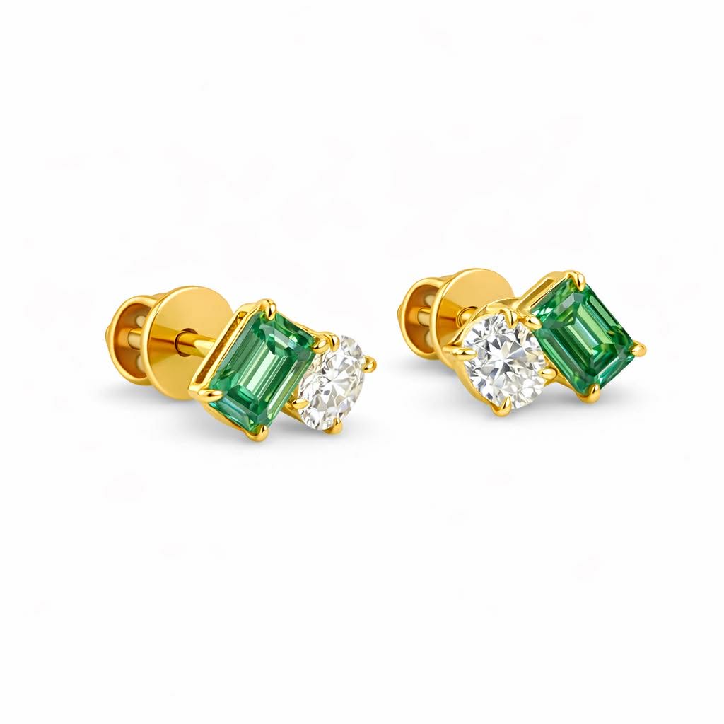 1CT OVAL + 2CT GREEN EMERALD STUDS = 6CTW