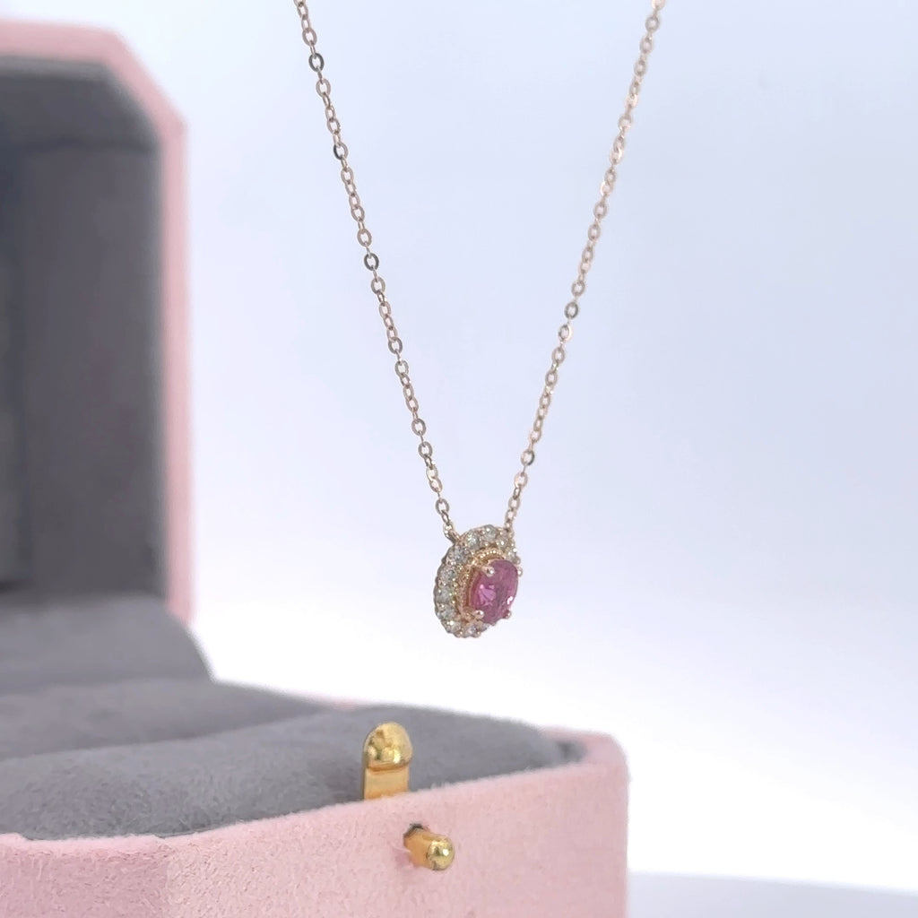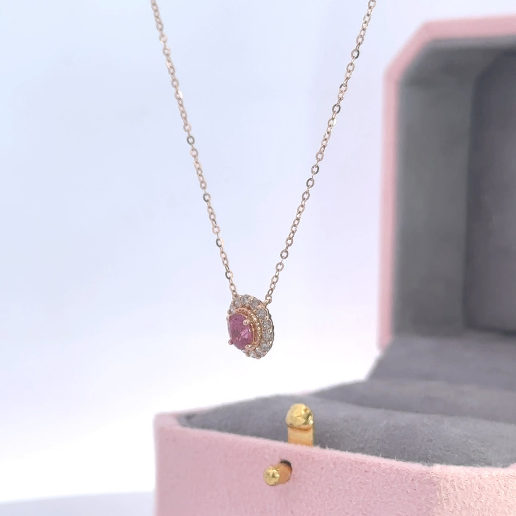 PINK TOURMALINE HALO NECKLACE is backordered and will ship as soon as it is back in stock.