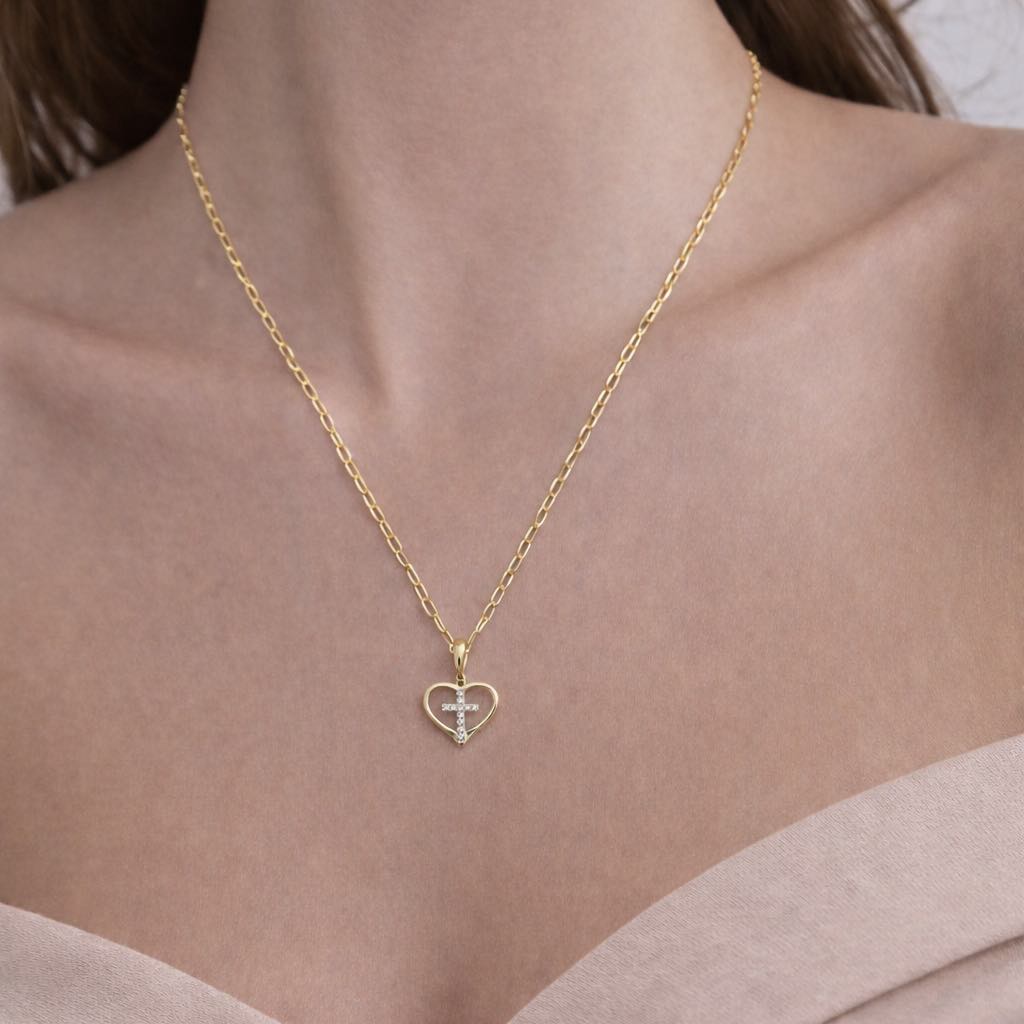 HEART W/CROSS PENDANT NATURAL DIAMONDS .06CTW 14K SETTING