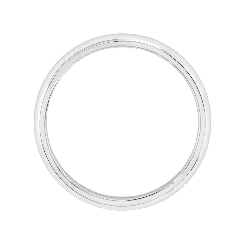 A simple, classic and timeless, 18 carat white gold, male wedding band that consists of a rounded 5mm shank with a polished finish.