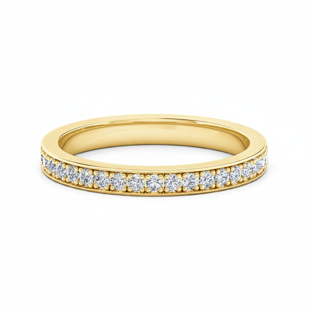 A classic, 18 carat white gold eternity ring design that consists of a 2.7mm shank with micropavé set diamonds.