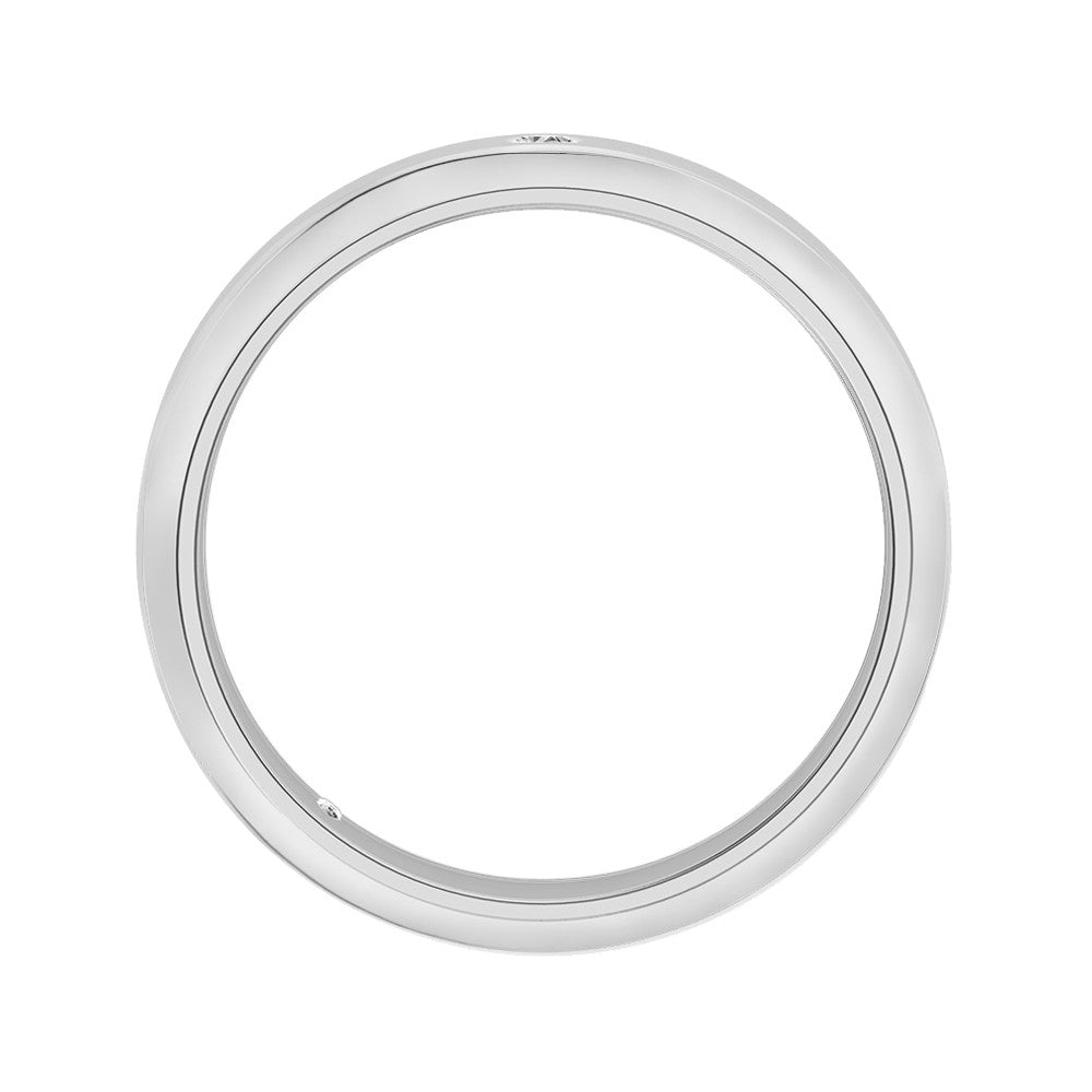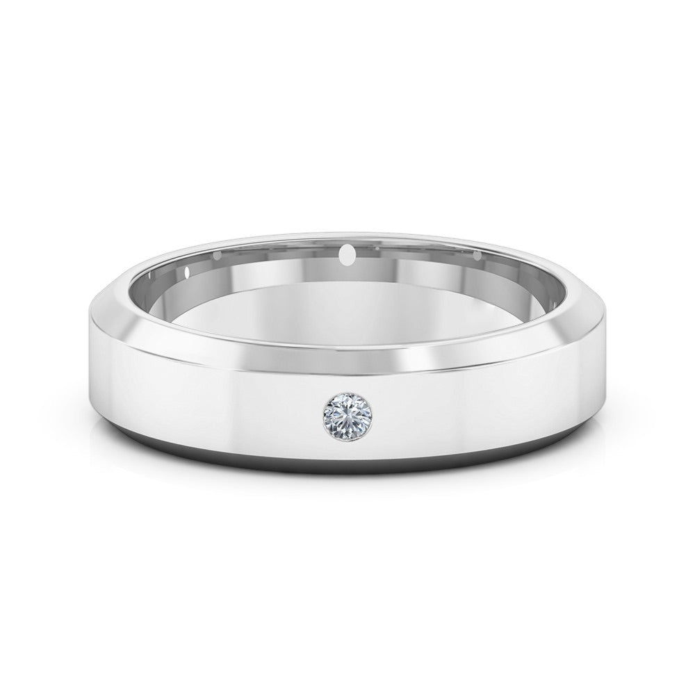 A cool, .30ct diamond on 18k white gold, male wedding band that consists of a chamfered, 6mm shank with polished finish.