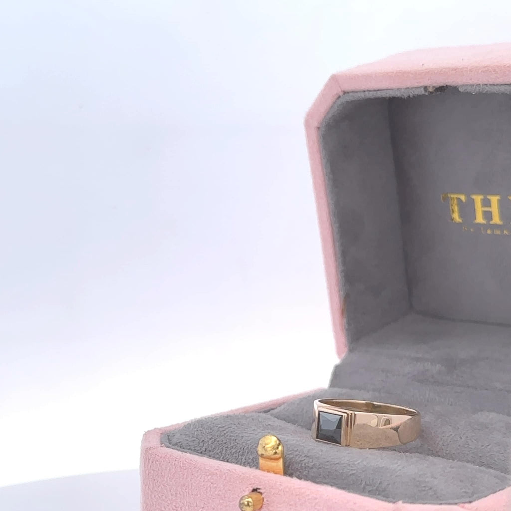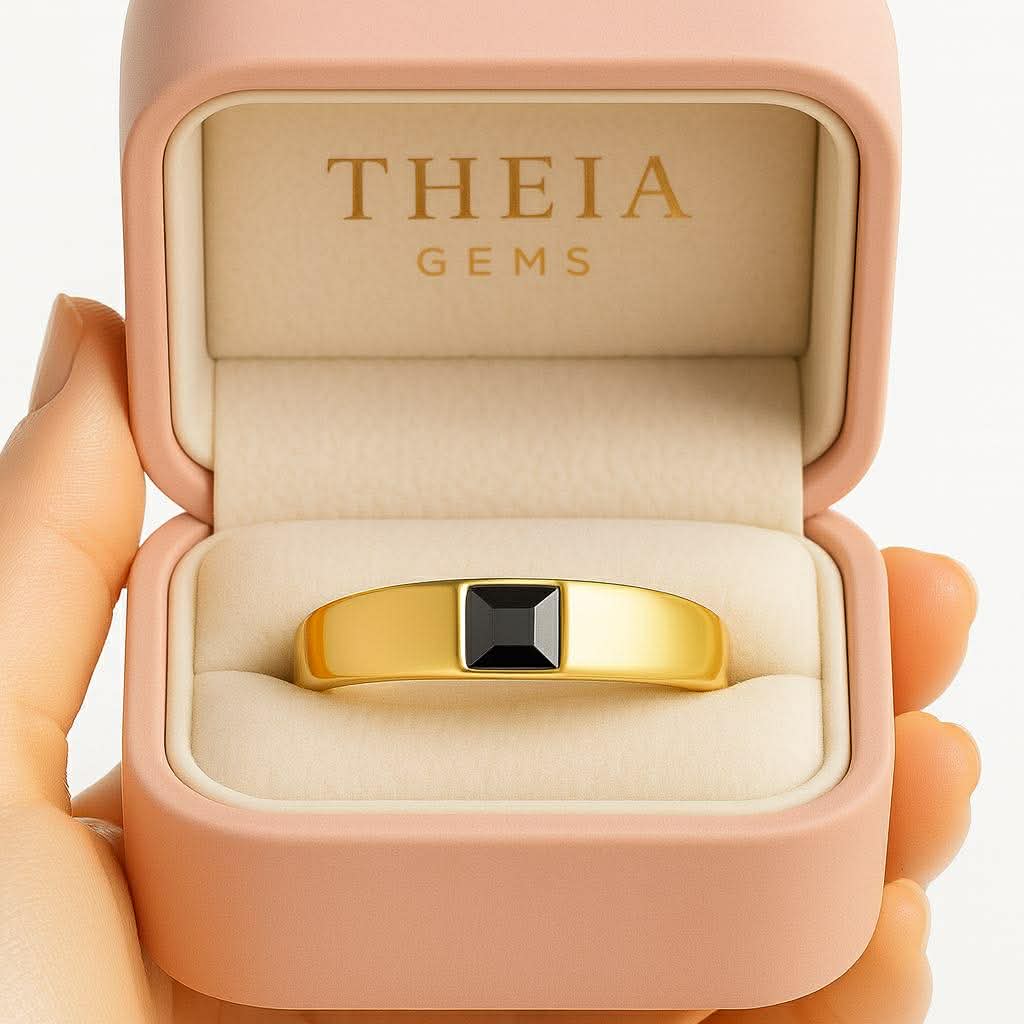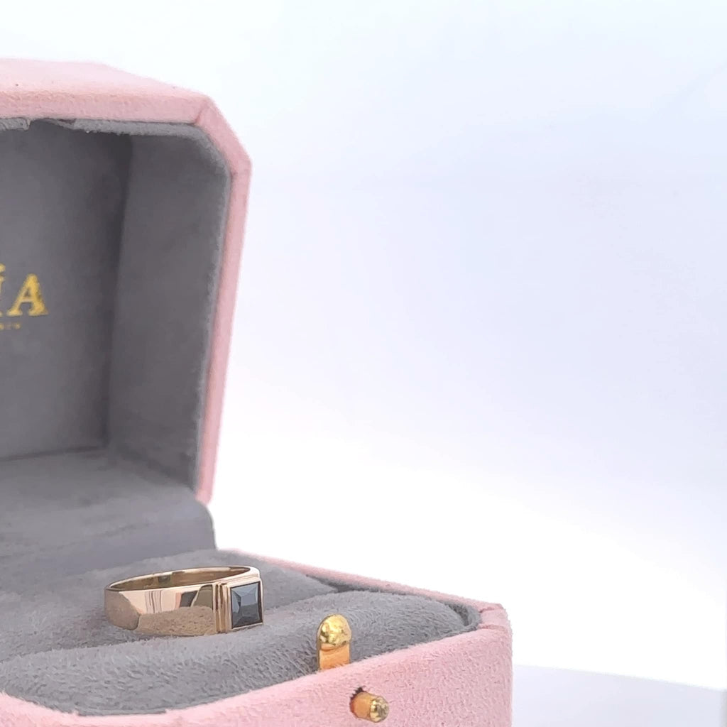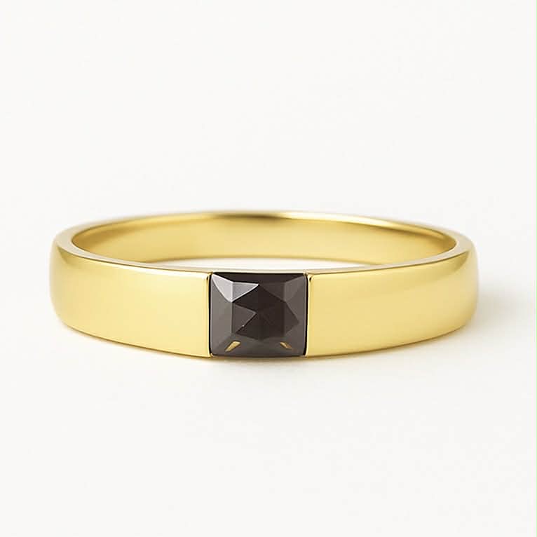 1CT BLACK ONYX PRINCESS CUT 18K YELLOW GOLD