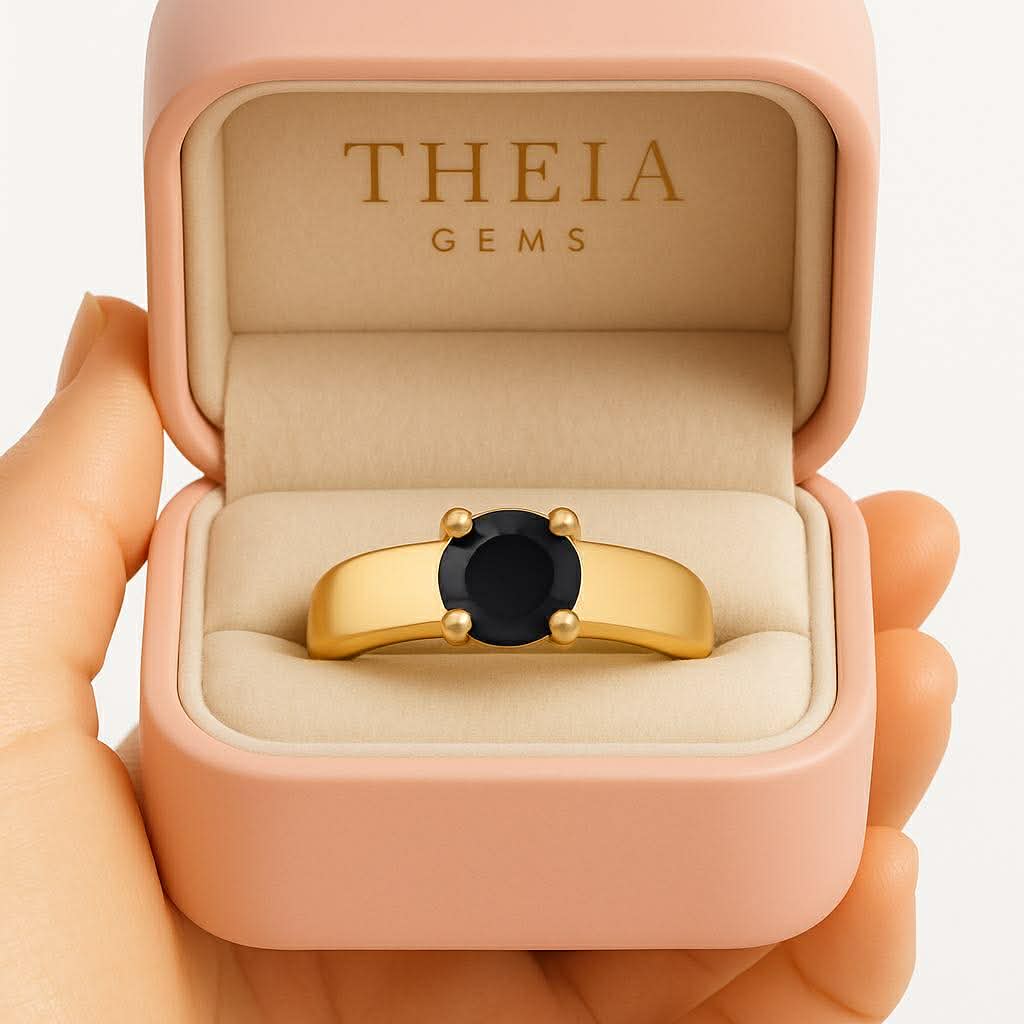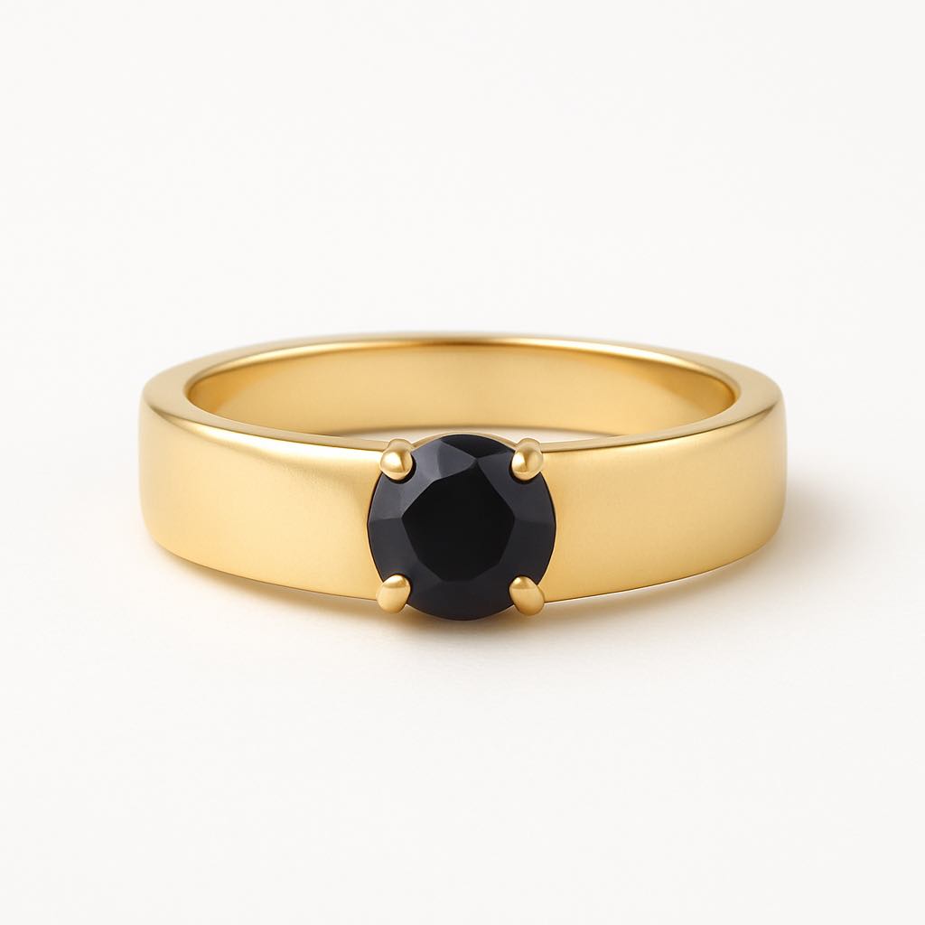1CT ROUND BLACK ONYX 18K YELLOW GOLD