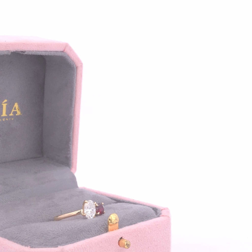 1CT OVAL + .4CT RED GARNET ROUND 1.5CTW 18K YELLOW GOLD