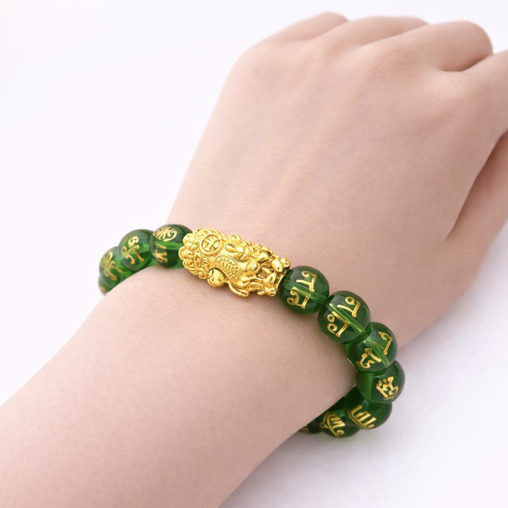 14K PIYAO GREEN AGATE MANTRA - small / 15-16cm is backordered and will ship as soon as it is back in stock.