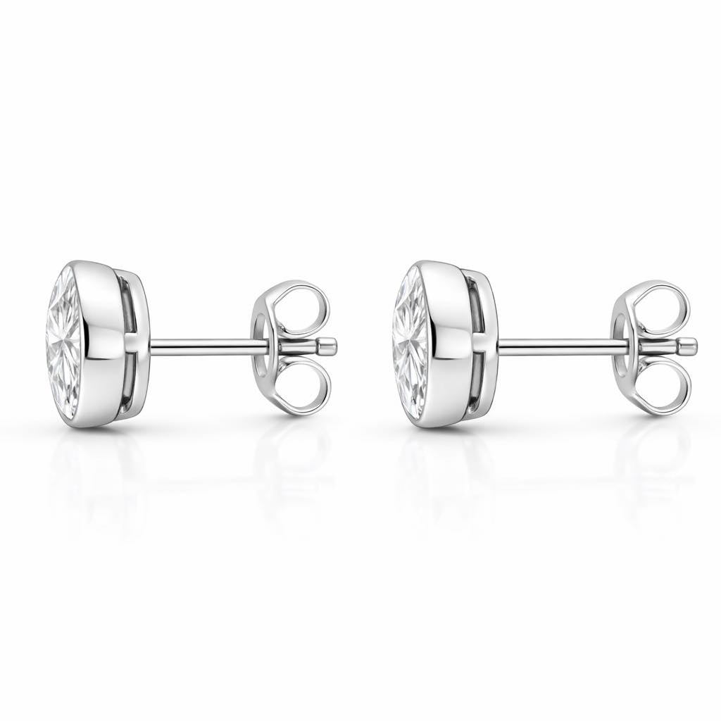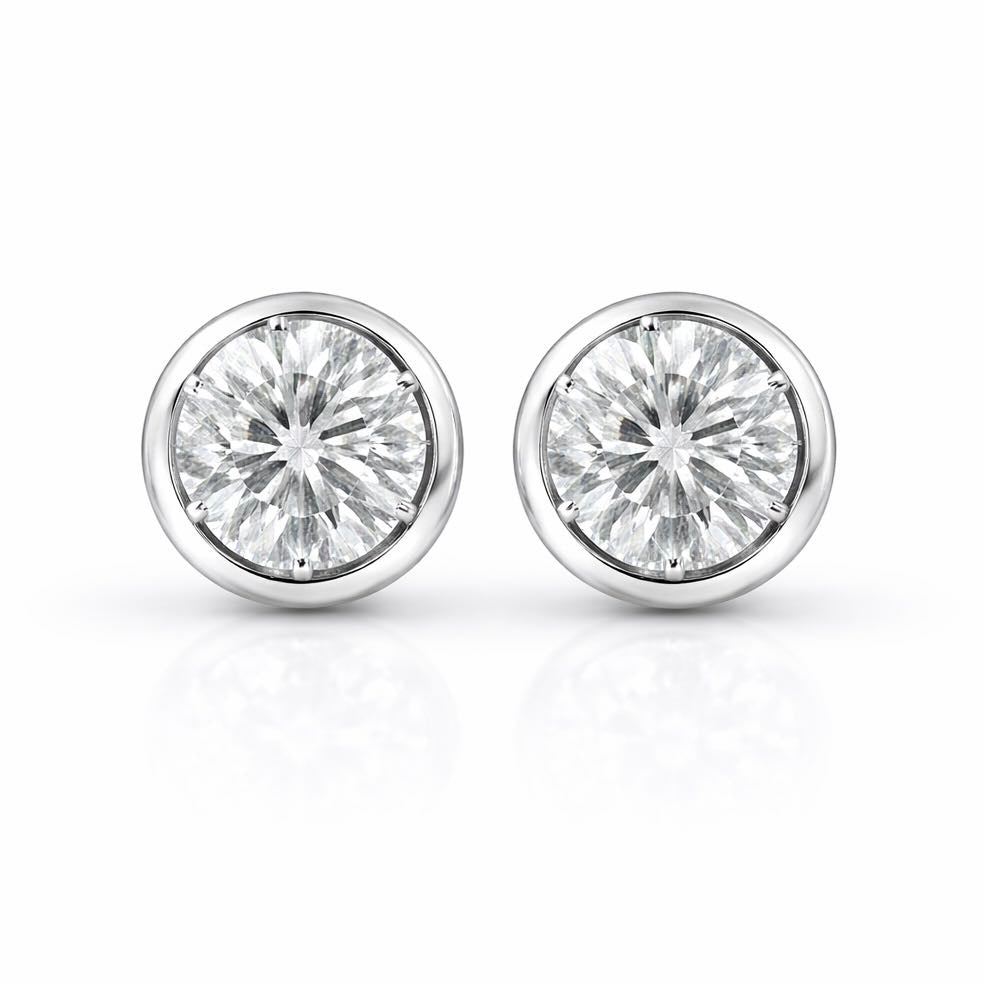 ATISA- features a bezel stud earrings crafted in 18k white/gold.