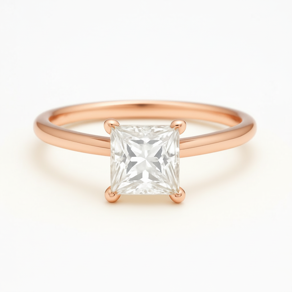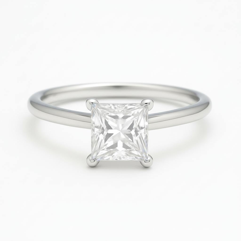 Lovely and timeless, this princess cut setting features petite prongs and a gallery wire for maximum light exposure. Customize AUDREY with your desired carat size, metal tone and ring size.