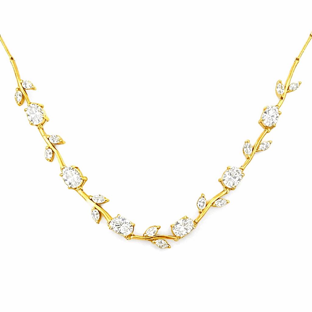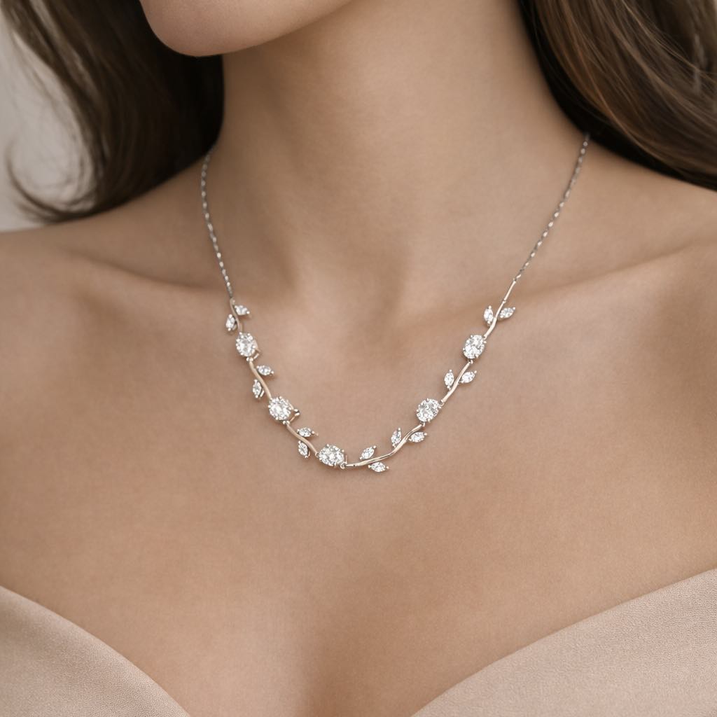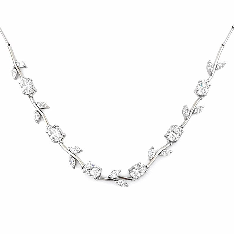 A timeless diamond necklace adorned with oval brilliant diamonds and marquise stones intricately arranged to resemble a captivating flower- a true symbolism of exquisite beauty of every woman.