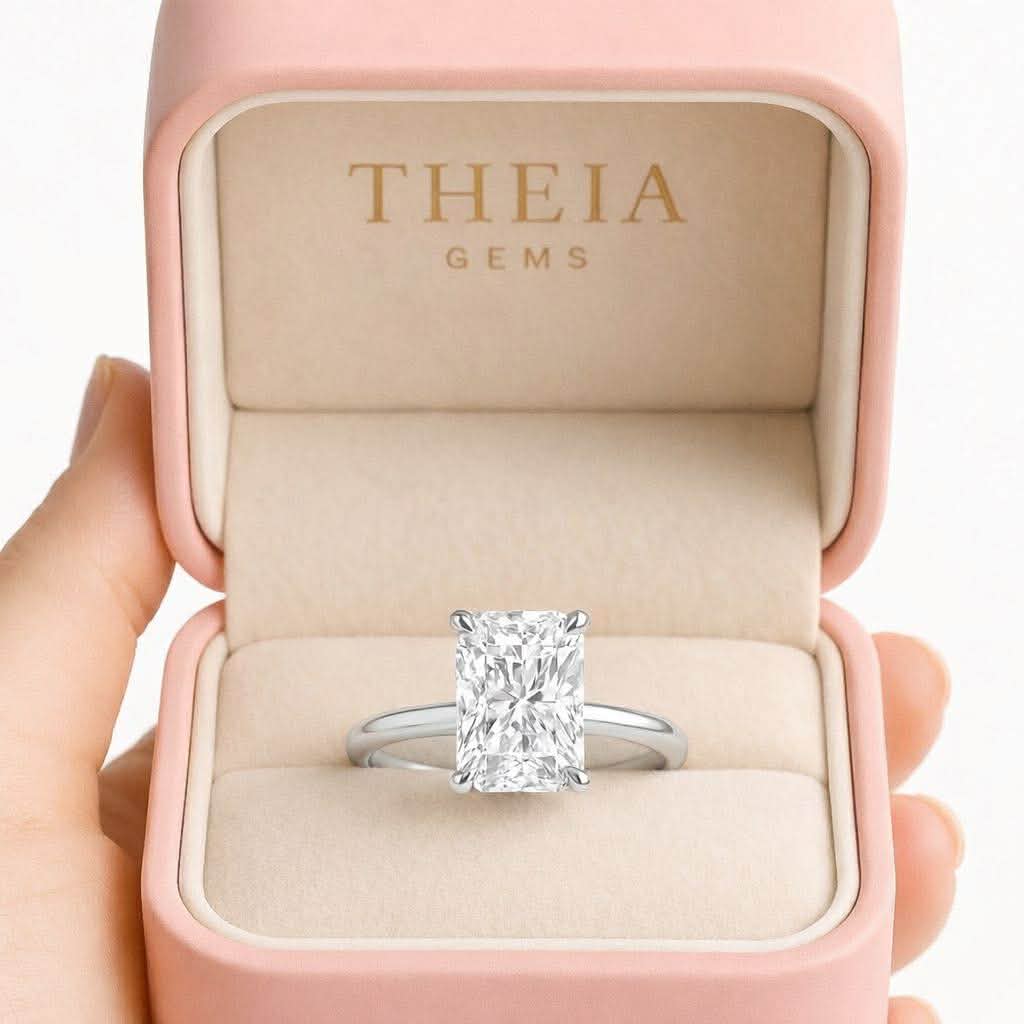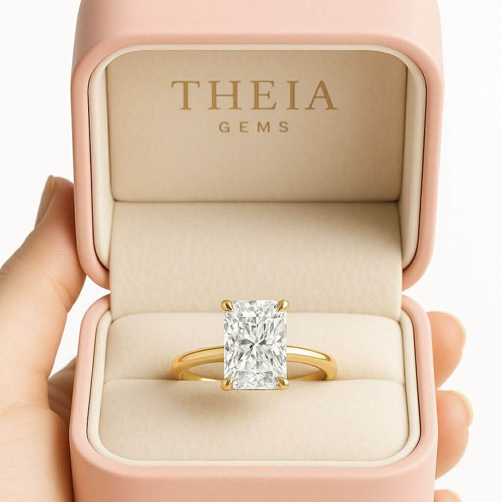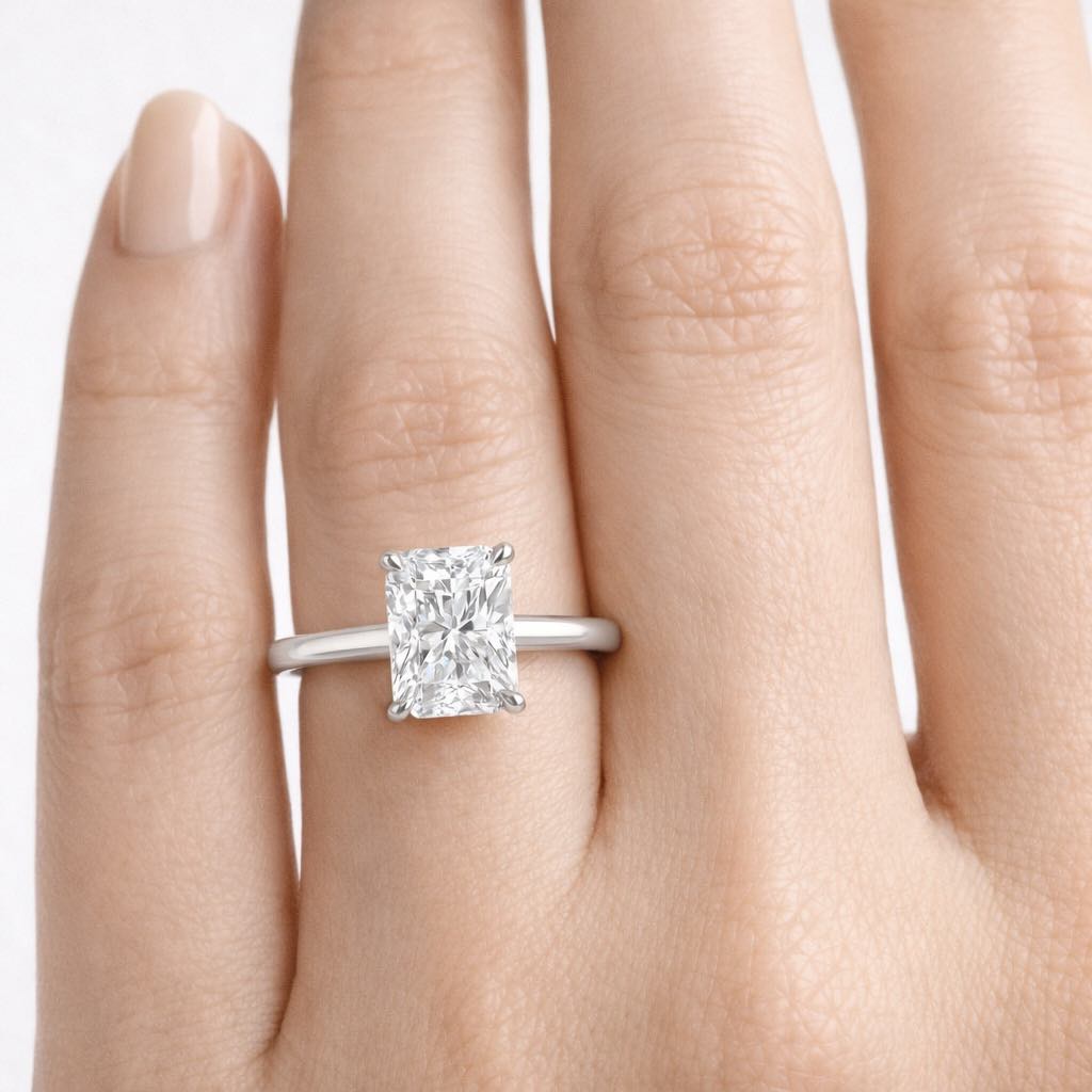 BIA features a classic 4 prong basket for a maximum exposure and brilliance of this gorgeous brilliant radiant cut lab grown diamond.