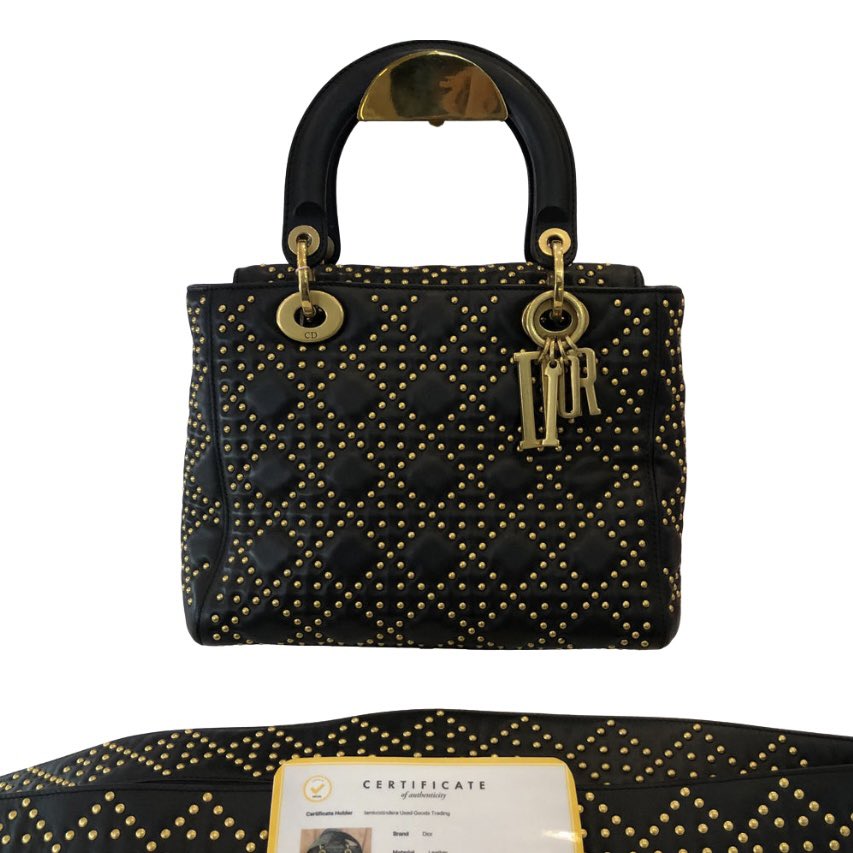 Lady Dior Two-way Studded Bag Black, GHW w/ paperbag