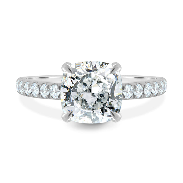 Available in a four or six prong basket, this gorgeous setting features a pavé diamond band with a hidden diamond collar. Customize LUCA with your desired carat size, metal tone and ring size.