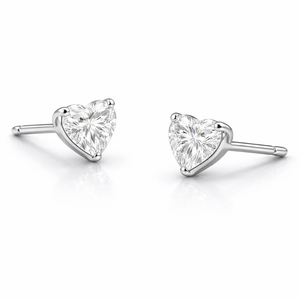 Half carat each stud of brilliant heart cut diamond bezel stud earrings.