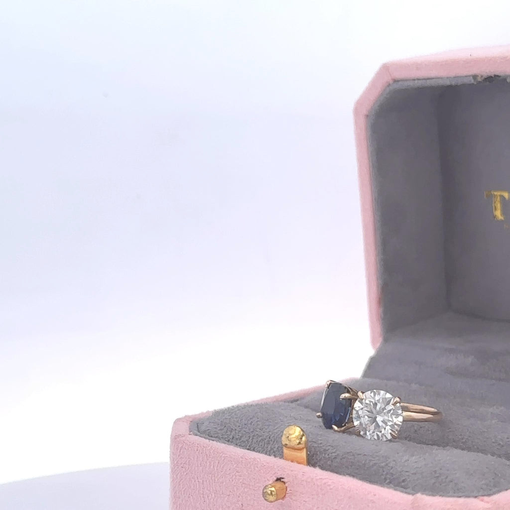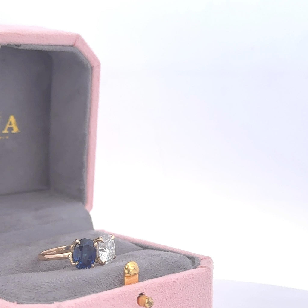 TWO STONE RING (3CT ROUND +2CT BLUE SAPPIRE)